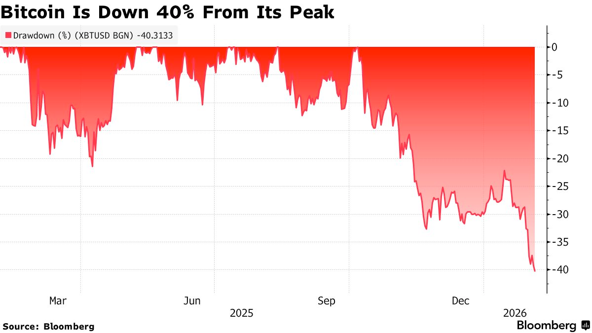 Bitcoin has lost 40% since it hit an all-time high of over $126,000 in October, shedding momentum, narrative and its claim as a hedge all at once.